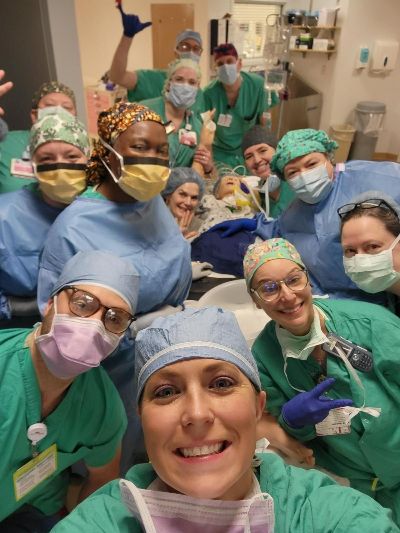 Above: The OB team celebrates managing a fire and saving a patient after quarterly team training. | |
