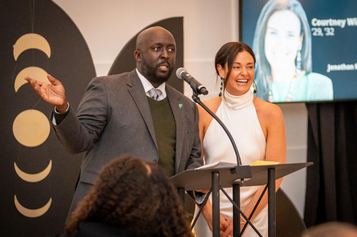 | | Gorgeous new venue this year: Arbor Midtown | Last year's emcees welcoming the guests: Jonathan Ntheketha P '29, '31, Director of Diversity, Equity & Inclusion (2021-present) and Courtney Winslow P '29, '26, '32 | Board President, Ted Townsend '98, P '32, '33 | Transitional Head of School, Dr. Kathryn Kaiser (2023-present) | Members of our alumni community joined us that evening: Maddy August '07, Bob August P '07, '11, Joseph Maurici '04 (bidding) and Matt Present '04 | Emcees Joe Ellis P '21, '23 and Chris D'Orso | Uptown Groove inspired us to dance! | |