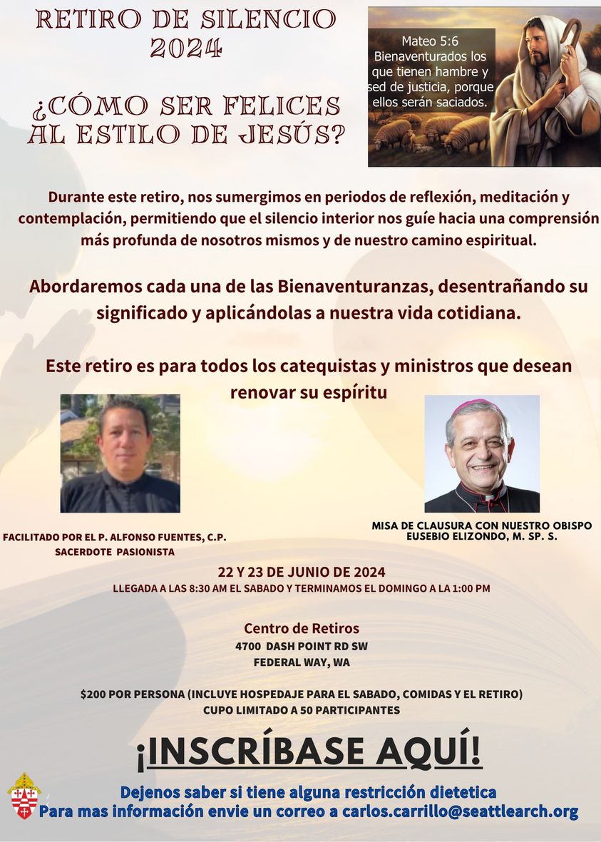 En esta ocasión, quiero resaltar y comunicar que culminamos nuestros retiros de Confirmación arquidiocesanos en los que 425 jóvenes y 95 adultos asistieron. En colaboración con el departamento de Pastoral Juvenil, y con la participación de Maria Murphree, Sor Chris Still, OSF, el P. Carlos Orozco, y el P. Justin Ryan, y la coordinación de logística por parte de Joseph Tancioco y Lisa Hillyard, se proporcionó un espacio para que los jóvenes se reunieran con otras parroquias, oraran y compartieran experiencias de su fe. La arquidiócesis también es muy afortunada porque cientos de jóvenes más han recibido o recibirán el Sacramento de la Confirmación en los próximos meses.
