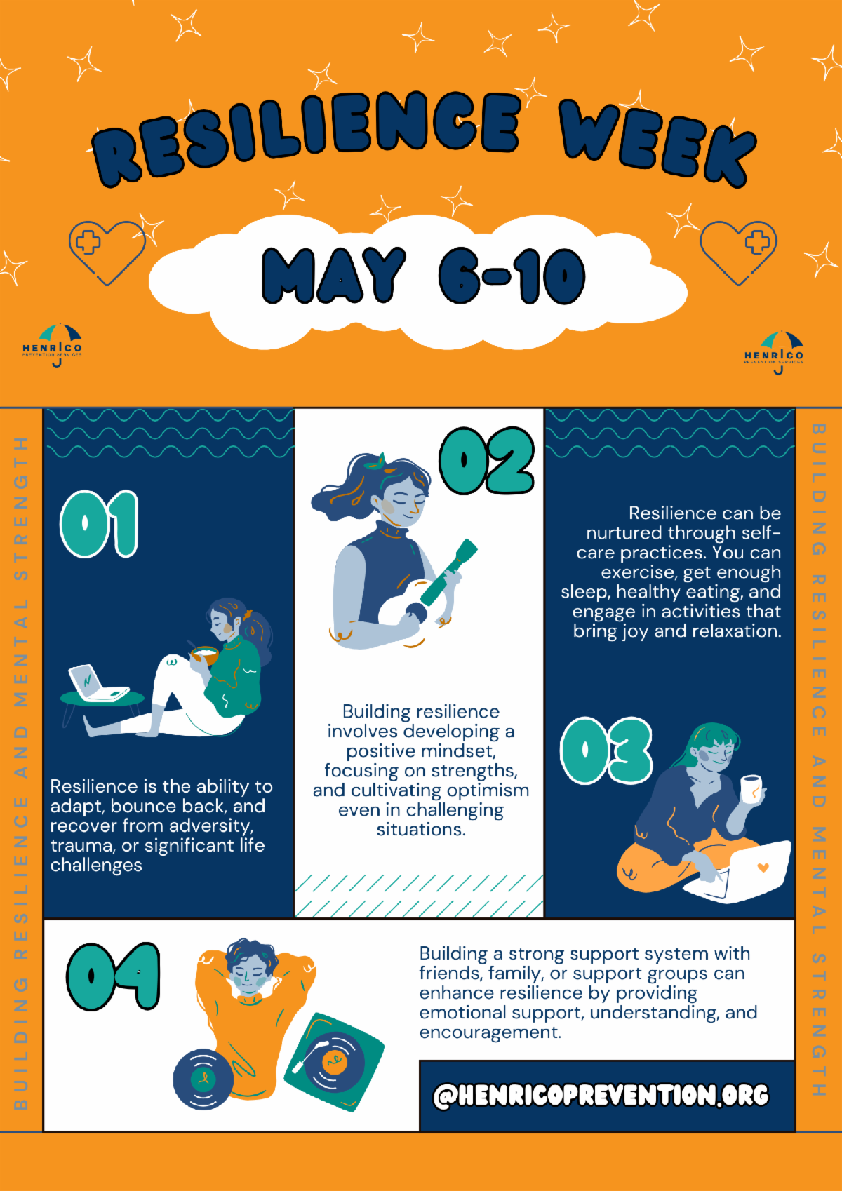 Stay updated with our weekly content on the Henrico Prevention Facebook Page for tips and resources to promote mental health awareness and support.