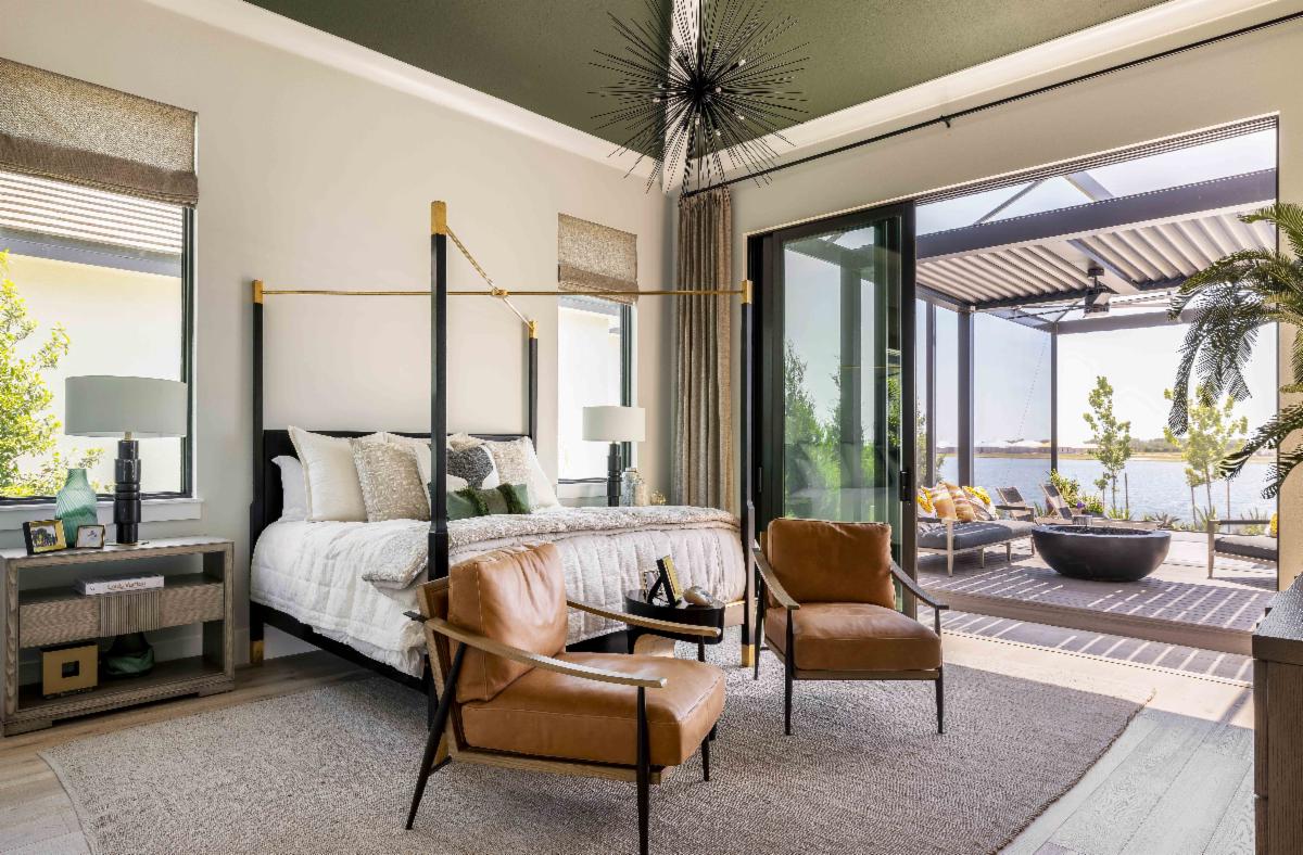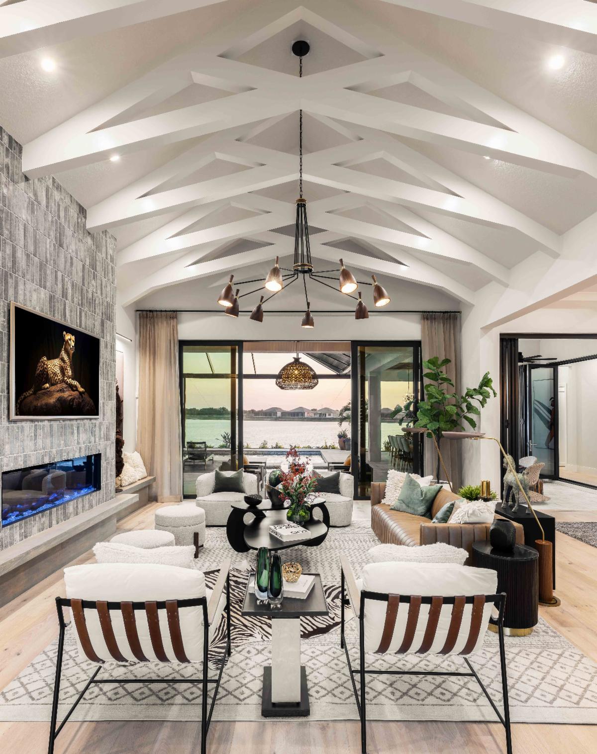 Our newest model home in Wild Blue at Waterside Village in Lakewood Ranch, winner "Best Overall" in the 2024 Parade of Homes. This home blends modern luxury with farmhouse chic. From the moment you enter, towering ceilings with exquisite beams draw your gaze upward, creating a sense of grandeur and space. The architectural details whisk you into a world where comfort meets sophistication and every corner tells a story of style and grace.