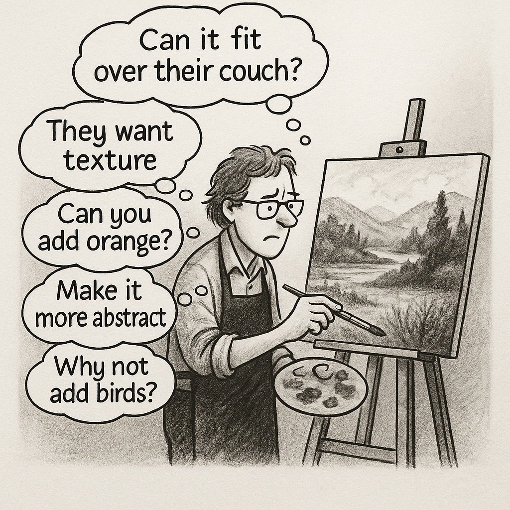 Still, one of the biggest mistakes artists make is interpreting this feedback too literally. The idea is not to chase every whim or try to please everyone — that only leads to diluted work. Instead, the most powerful product shifts come when you filter what you hear through your own aesthetic and creative sensibility. If your originals are out of budget for many collectors, perhaps a thoughtfully curated line of small prints or limited editions could invite more people into your world without compromising your brand. If a particular motif resonates, maybe you explore it in a new material or scale. The key is to expand your voice, not replace it.