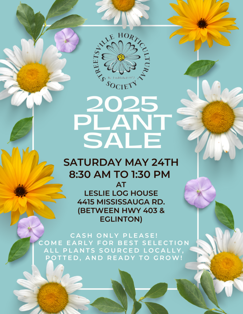 SHS accepts cash only for the plants and come early for the best selection! Plants are all locally sourced, potted and ready to make your garden gorgeous! More info at streetsvillehort.ca.