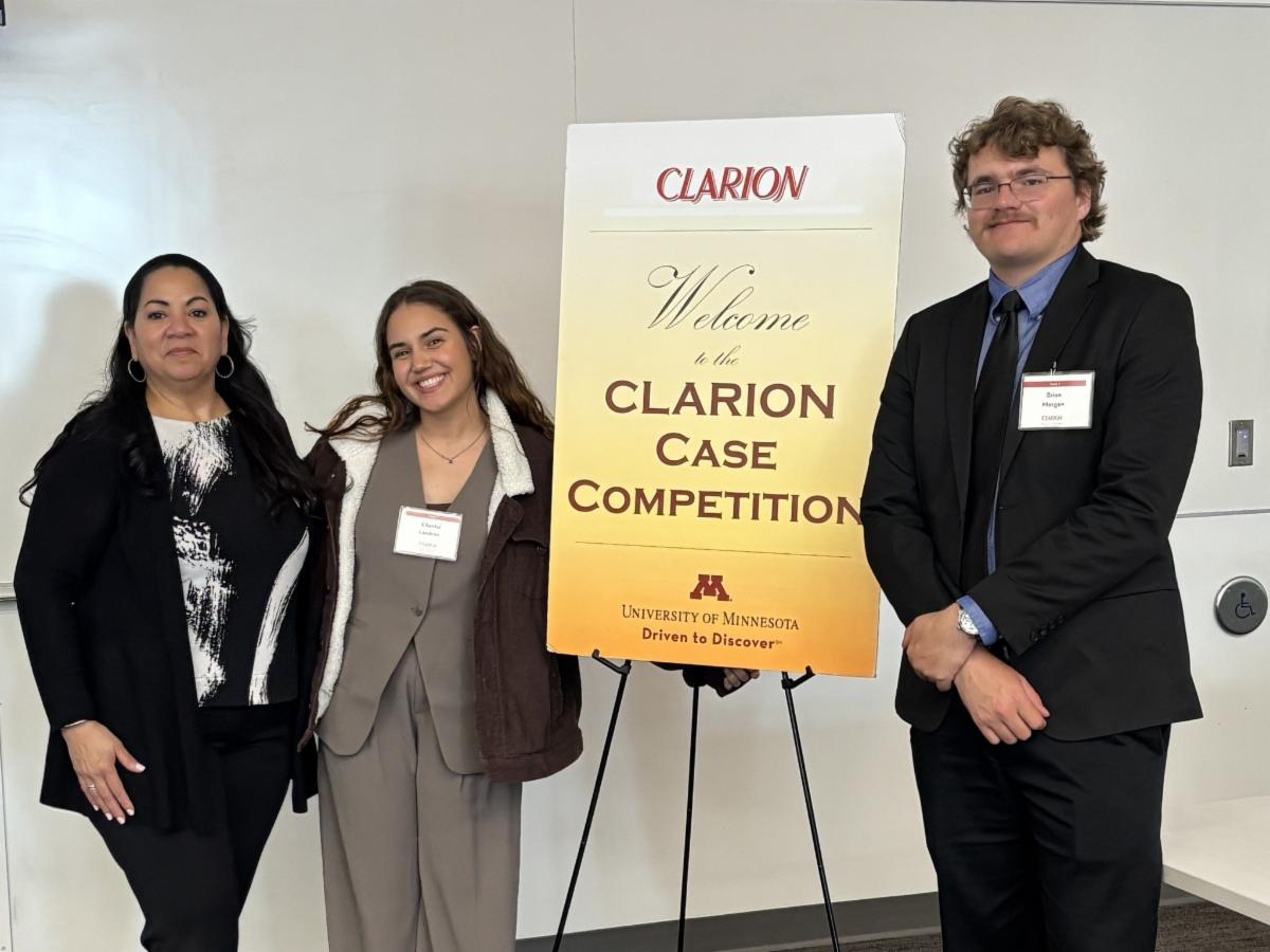 Master of Science in Nursing (MSN) Leadership and Financial Administration student Genesi Gozalez (at far left), along with a team of students from Florida Atlantic, won the Health Equity Innovation Award during the 20th annual CLARION National Interprofessional Case Competition, hosted by the Student Board at the University of Minnesota on April 11 and 12.