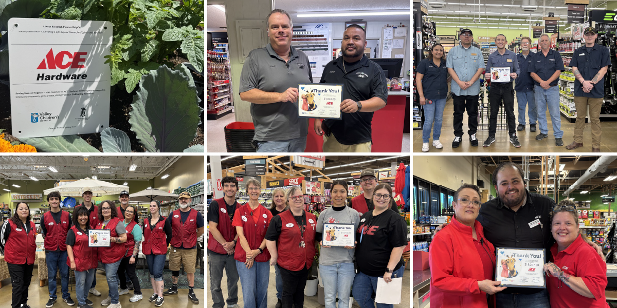 For over three decades, Ace Hardware has remained a dedicated supporter of Children’s Miracle Network Hospitals, consistently demonstrating a deep commitment to enhancing the lives of children across the country. In 2024, our Central Valley Ace Hardware locations raised an incredible $118,113 for Valley Children’s Hospital, bringing their lifetime contribution since 1992 to more than $738,000.