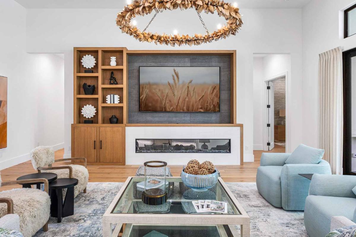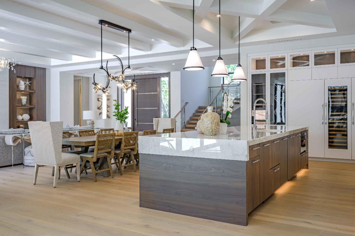 This stunning home, designed by Kathy Monahan and Susan Melo in collaboration with Seaside Custom Builders, exemplifies the beauty of coastal living elevated by refined craftsmanship. Warm textures, woven elements, and layered neutrals bring a grounded serenity to the spaces, while exquisite lighting and custom built-ins. It’s a harmonious blend of relaxation and sophistication—perfectly tailored for modern living.