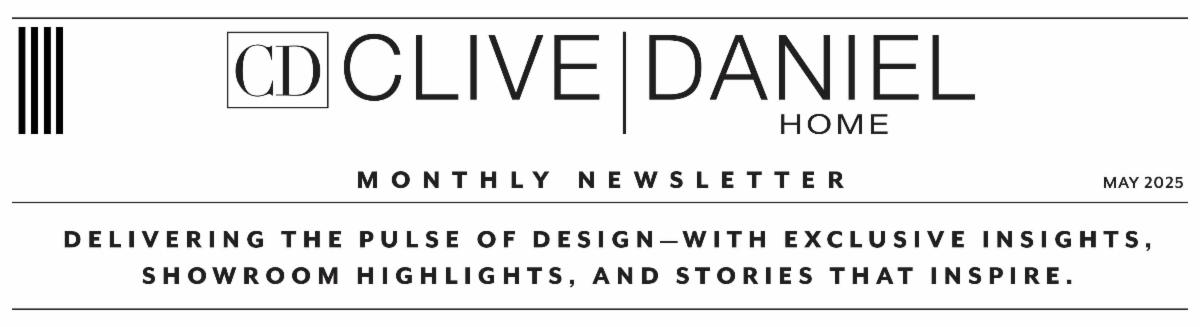 May at Clive Daniel Home is all about intention, innovation, and inviting style. It’s the perfect time to refresh your space and your mindset—indoors and out. We’re spotlighting the little luxuries that make a big impact: plush new textiles, artisanal finishes, beautifully tailored furnishings, and