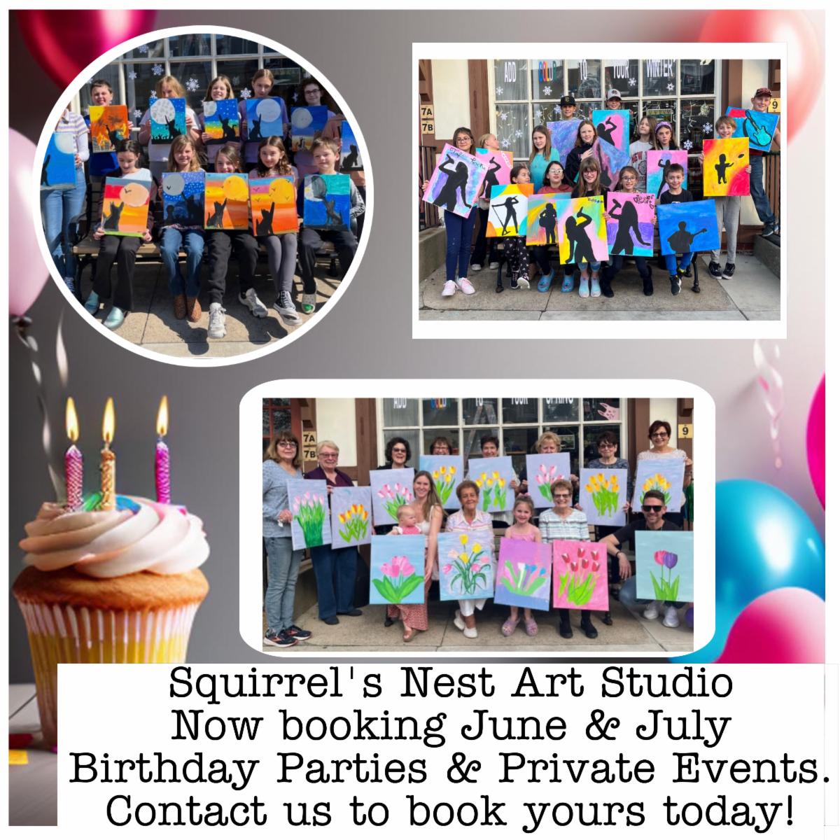 The Squirrel's Nest Art Studio Now Booking June & July Birthday Parties!