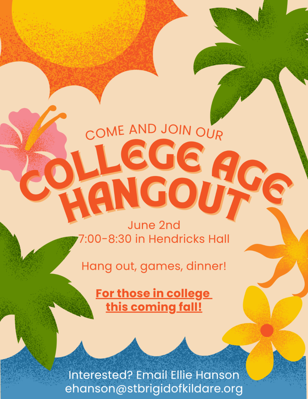 Also, welcome home to all of our college aged parishioners! We pray that your transition back home is restful and fruitful! We would love to offer an opportunity for you to meet other college aged students in the parish and to feel at home at St. Brigid!