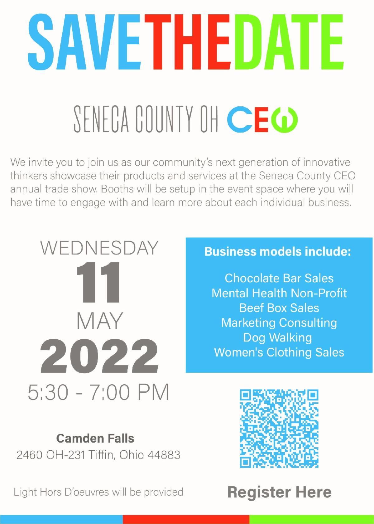 Join us for an exciting evening where you’ll have the opportunity to engage with each of the 6 Seneca County CEO student entrepreneurs as they display their business at the upcoming Trade Show on May 11.