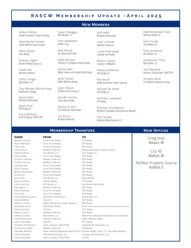 Please submit your completed online application by Friday, June 6, 2025, and feel free to reach out to RASCW (RASCW@wisre.com) with any questions.