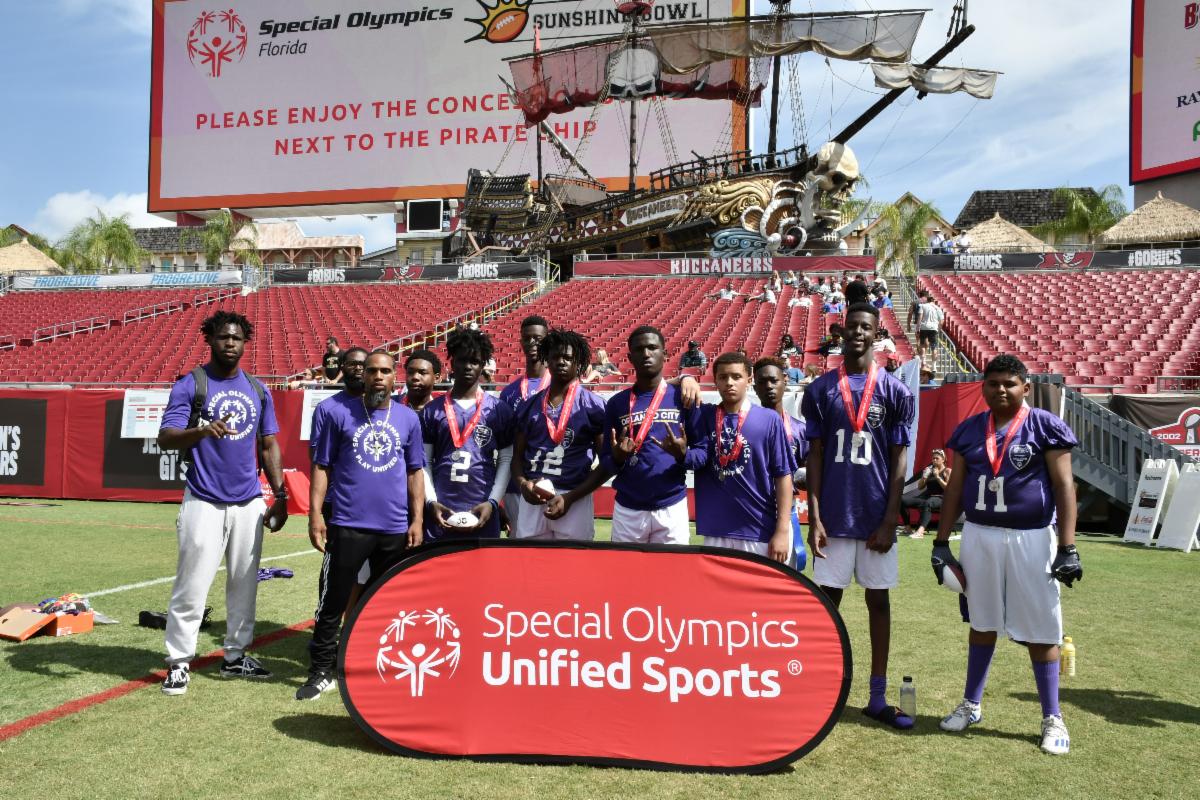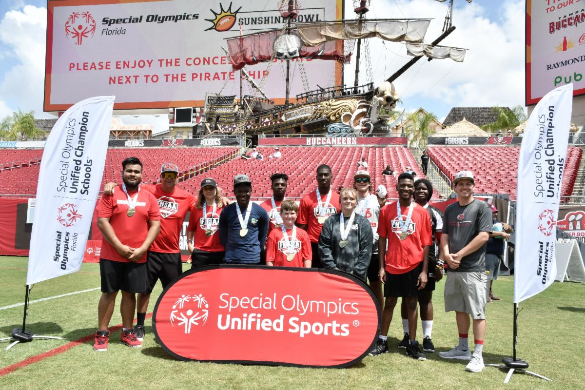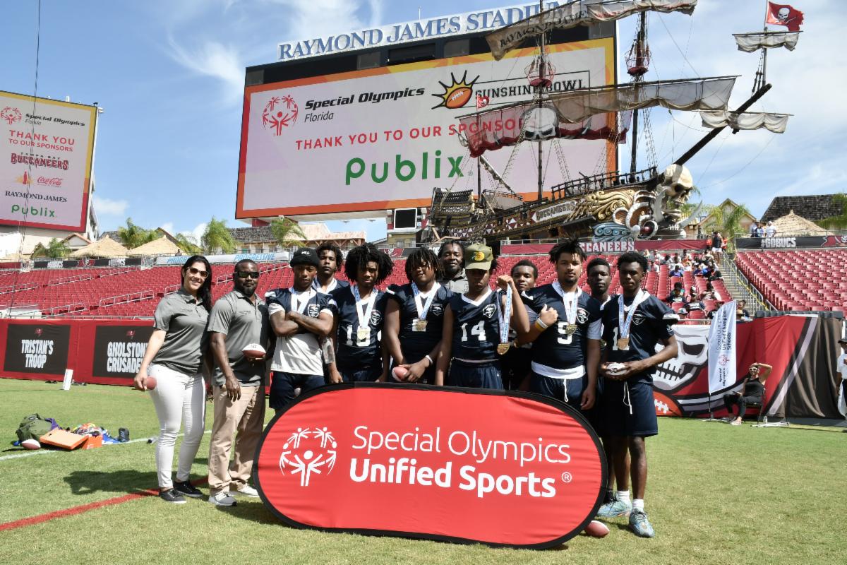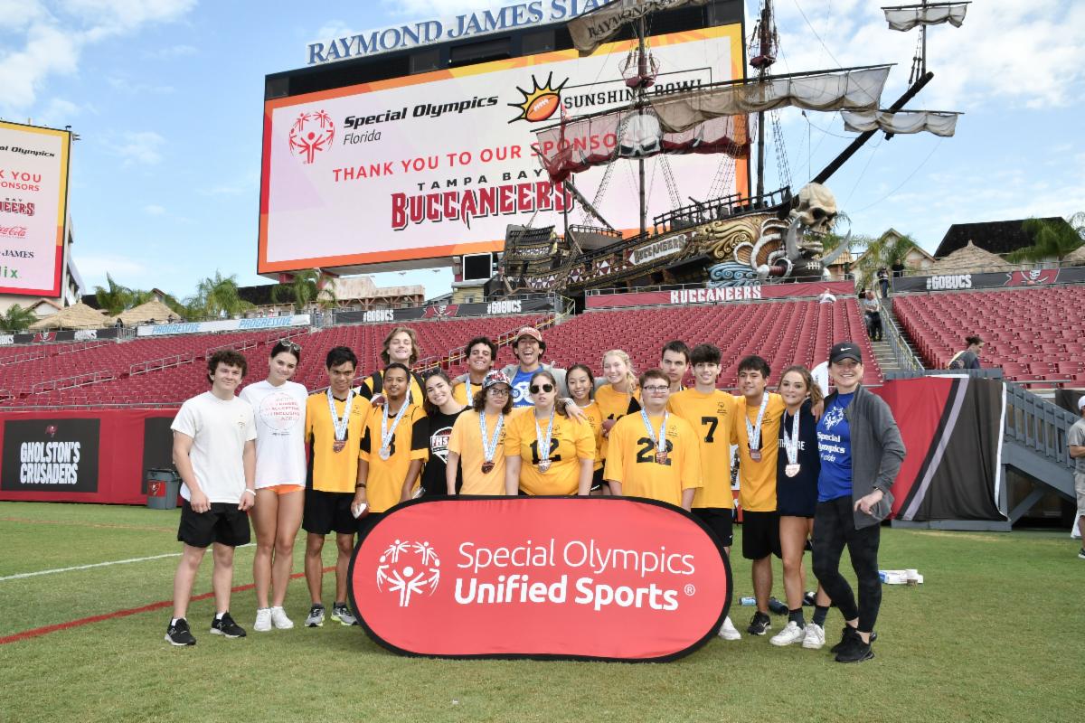 FHSAA Flag Football - Five Unified teams competed in the Unified division of the FHSAA Flag Football State Championships at Raymond James Stadium in Tampa on April 30. The teams were: Durant HS, Vero Beach HS, HB Plant HS, Language & Literacy, and Homestead Senior HS. Homestead Senior HS took gold in the Division 1 and Vero Beach HS took gold in Division 2. Congrats to all teams and our dedicated coaches and volunteers for a great season!
