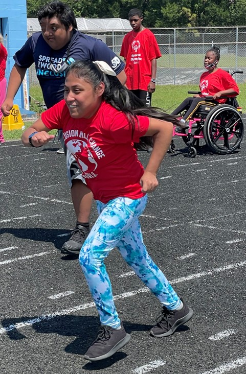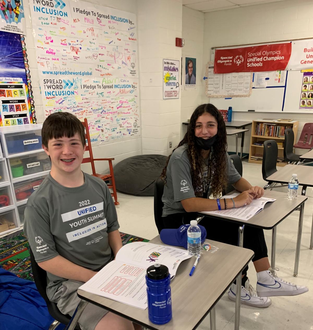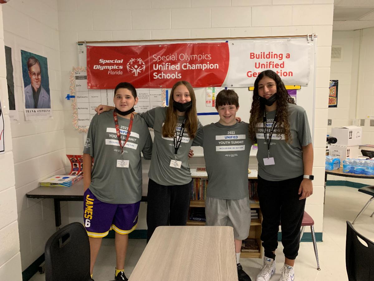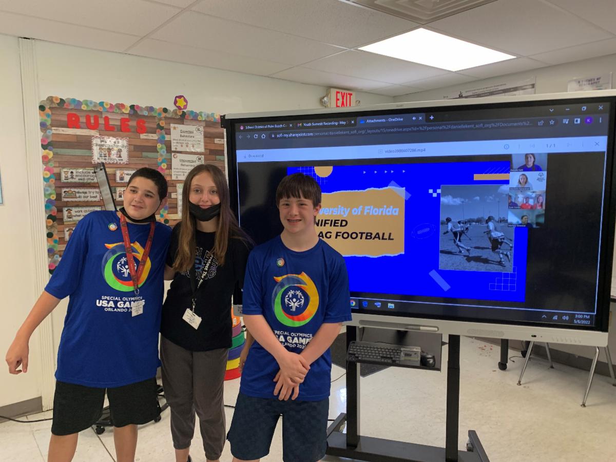 The 2022 Virtual Unified Youth Summit took place in early May and we were joined by nearly 100 Unified pairs and teachers/staff. Engaging sessions on volunteerism and Unified Sports development paved the way to learning about inclusive friendships, community engagement, and creating a culture of change and respect. Students are pictured here learning from guest speakers Jovita Woodrich at Volunteer Florida, and the University of Florida flag football team competing at the 2022 Special Olympics USA Games. Our Fans in the Stands poster making contest named Language & Literacy Academy For Learning #1!