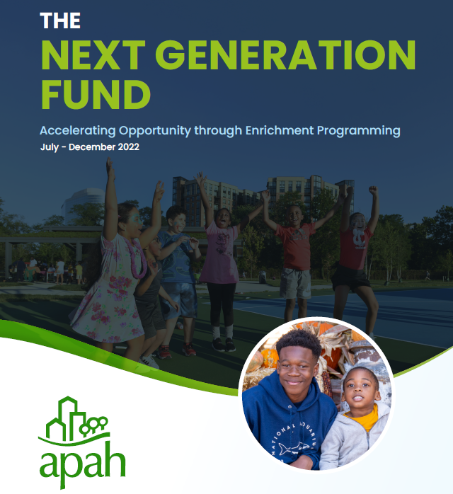 The Next Generation Fund aims to provide APAH families with cradle-to-career programming and support. The recently-released report outlines program highlights and participation. We are thankful for our donors' generosity.