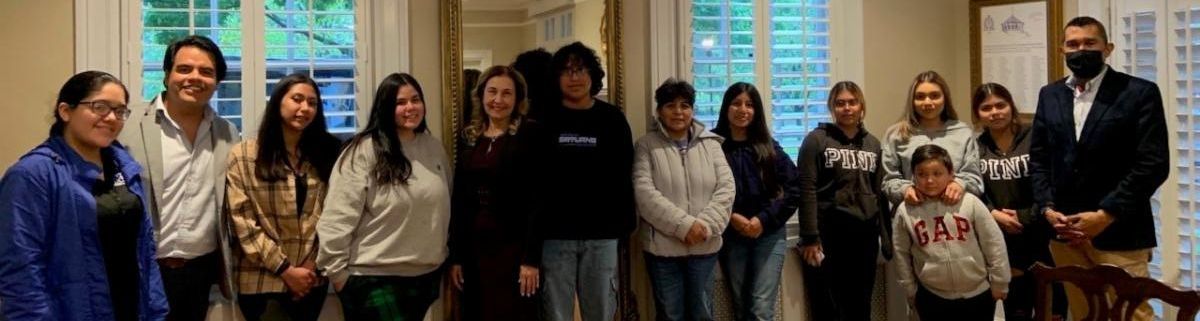 In 2023, students and their families met with Dr. Becerra (center), President of Marymount University. | |