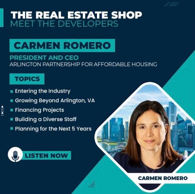 Carmen Romero, APAH's President and CEO, was featured on the Real Estate Shop Podcast this month, where she discussed APAH's mission, portfolio, her vision for the organization, and more.