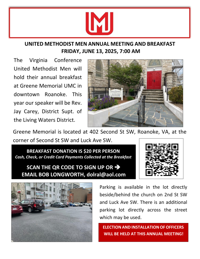 Annual Conference will be held in Roanoke June 12-14. Volunteers are still needed. Please use this link to sign-up: https://vaumc.org/ac2025/volunteer/