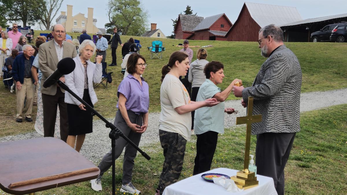 A hundred and twenty people gathered for an interdenominational worship service at the amphitheater of the Windsor Castle Park in Smithfield to remember and celebrate Jesus Christ resurrection. This is the third year that United Methodist Churches in the area invite other denominations to worship together at the Community Easter Sunrise Service.
