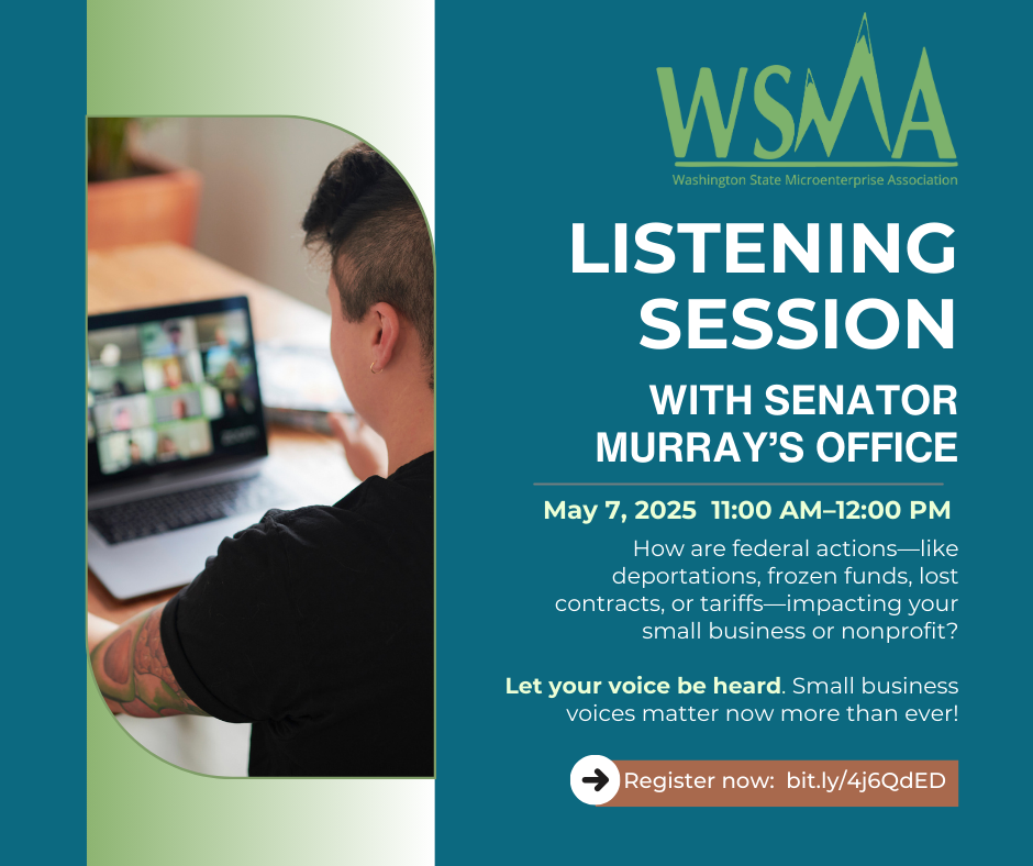 Washington State Microenterprise Association (WSMA) is holding an important virtual listening session with Senator Patty Murray’s Office