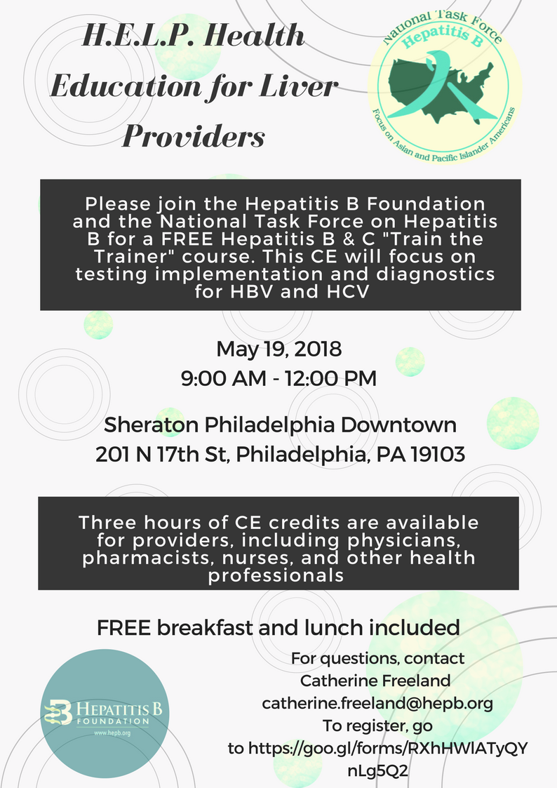 Thank you to our partners who attended our Spring 2018 Lunch & Learn! WE hope that you learned more about hepatitis B and enjoyed the mouth-watering meal! Congratulations to our 2018 Hep B Heroes, Deborah Hinds, MPH, Perinatal Hepatitis B Coordinator at the Philadelphia Department of Public Health for her work educating providers and Drexel's Pi Alpha Phi Fraternity for! their Jade Ribbon Campaign bringing awareness to hepatitis B and liver cancer.