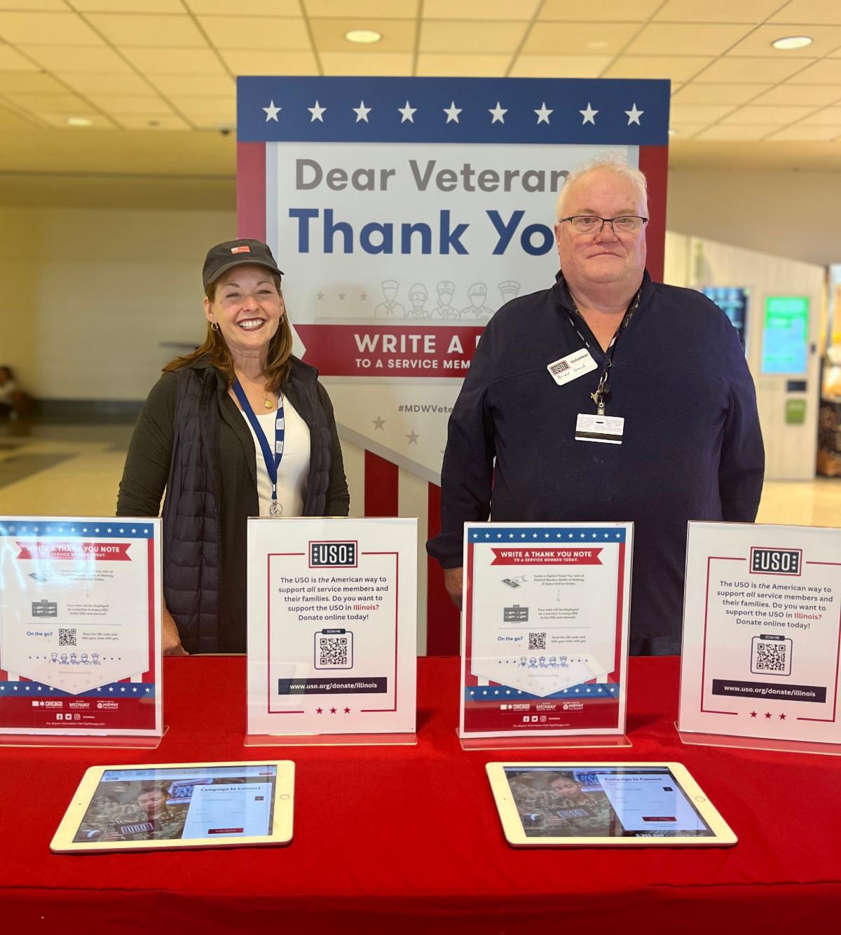 For Veterans Day, USO of Illinois volunteers at Midway asked travelers to write thank-you notes for veteran or active members of the U.S. Armed Forces as a token of appreciation for their service to our country.