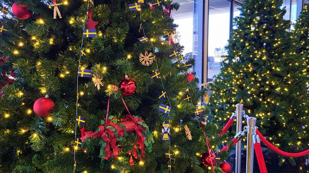 For example, the Swedish American Museum & Honorary Consulate of Sweden decorated its tree with ornaments of Sweden's national flag and an iconic Dutchman, while the TSA decked its tree in red, white, and blue complete with the TSA seal. Other decorations include holiday light displays scattered around O'Hare's campus and decorative banners and giant ornaments hanging inside the terminals.