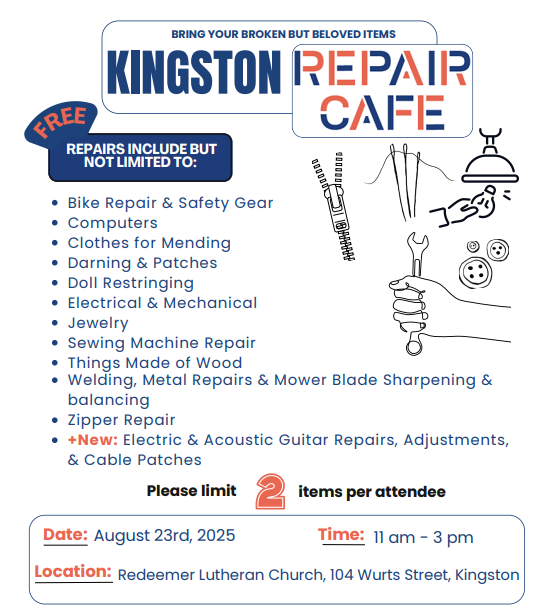 | | Kingston Repair Cafe on Saturday, August 23 | | HomeShare Ulster County Seeks Volunteers | |