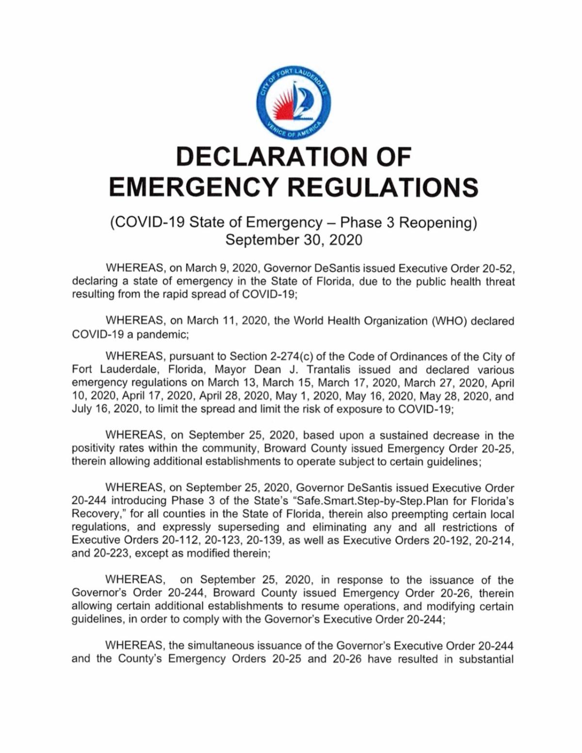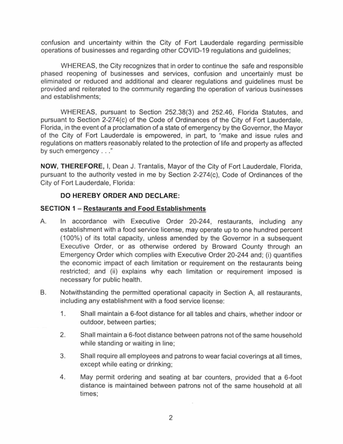 I am issuing a new emergency order applying to the city of Fort Lauderdale in an effort to clarify what businesses and individuals now must follow. I have been in frequent contact with Gov. DeSantis’ senior staff, and this order reflects what the state views as an appropriate level of local oversight.