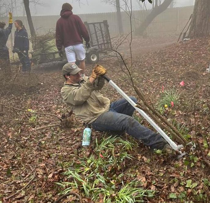 Eagle Scout and SMMHS student Caleb Quisenberry used a weed wrench to pull privet out by the roots. | |