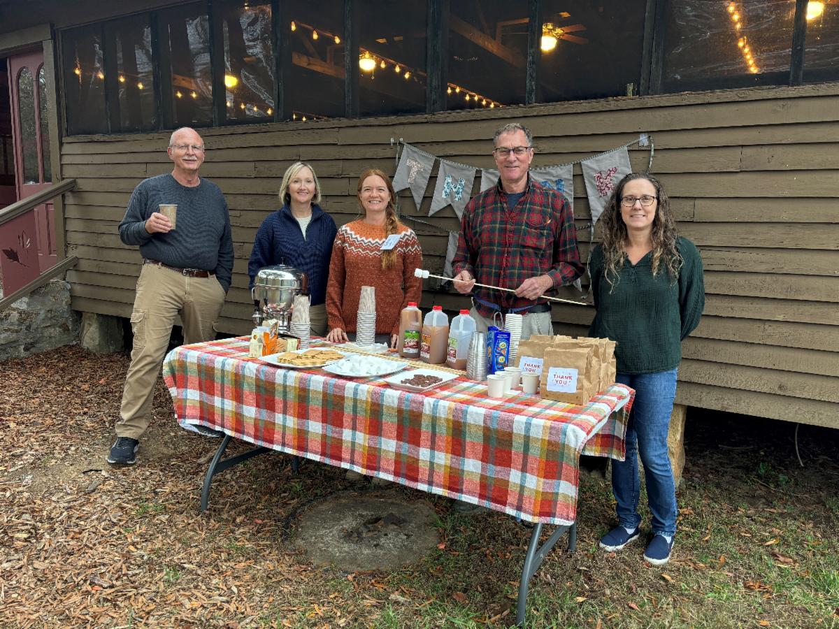Volunteers are at the heart of all the projects at McCoy from open houses to trail maintenance, from community events to the gardens. Board members and our executive director gathered to say thank you to our invaluable volunteers with a s’mores party on November 10. Pictured here are board members Fred Wildman, Anne Hayes Pearce, Beth Myers, Andy Jones, and Elizabeth Hamilton. | |
