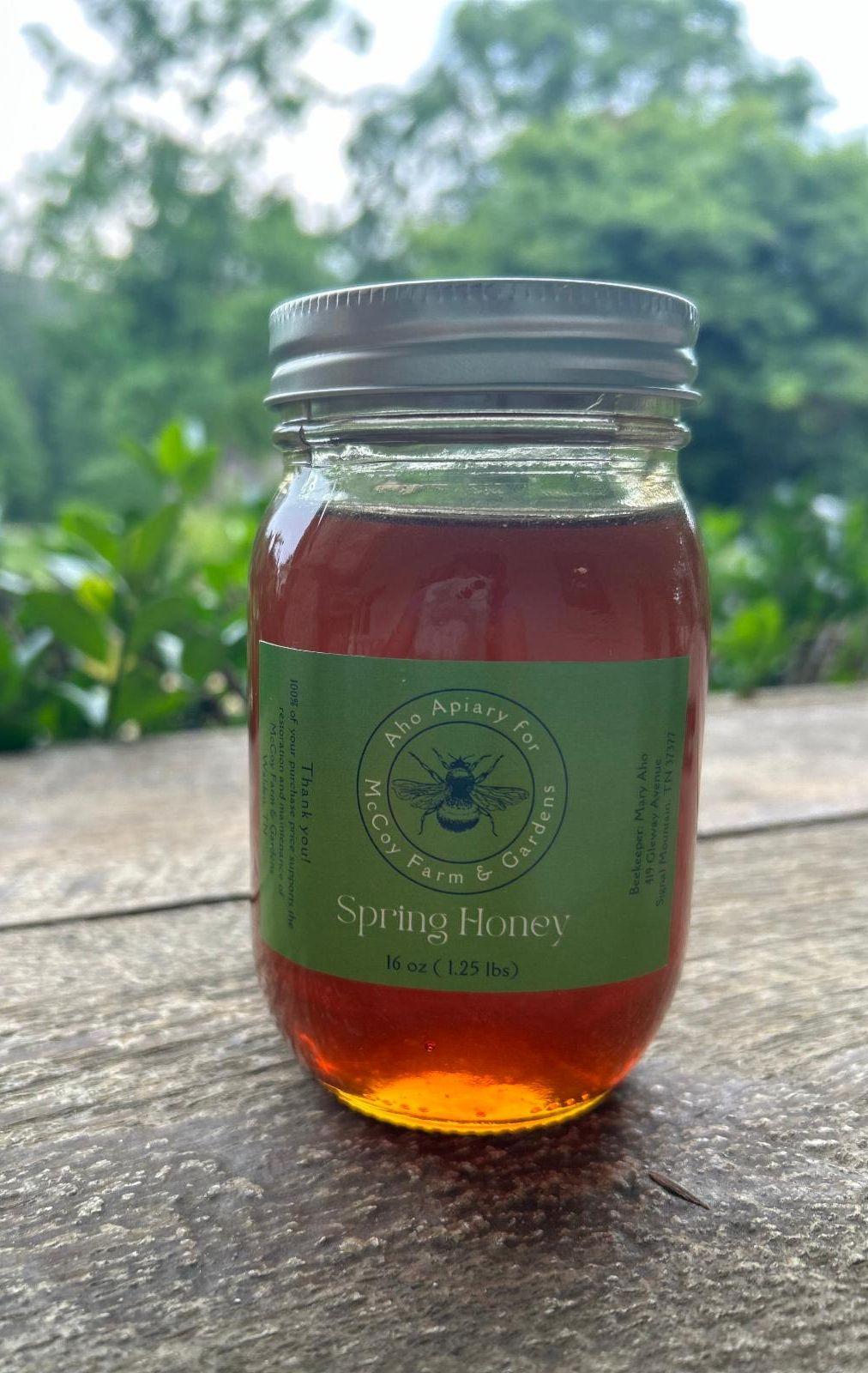 Find McCoy Merchandise such as T-shirts with our logo and water bottles already packaged for giving. Local honey in jars featuring the McCoy emblem makes the perfect hostess and teacher gift. Prints of Emma Bell Miles' watercolors of the W Road and Hanging Rock are available at $40.00 for someone special. Credit cards, cash, and Venmo are all accepted.