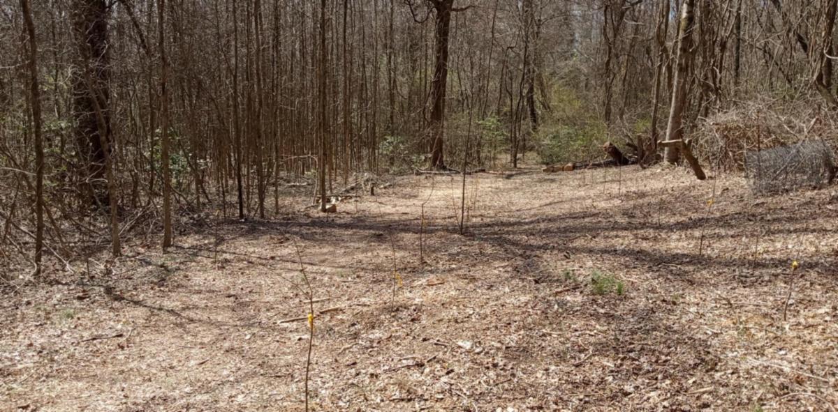Andy Jones, board member in charge of grounds, and Beth Myers, board member in charge of volunteers, have led this project. Andy explains that to remove the invasives, they cut the plants to the ground before applying herbicide only onto the cut stumps. “Primarily, we’re trying to remove privet, bittersweet, kudzu, and multiflora rose. We’re leaving everything that’s not one of those invasives, so there are tulip poplars, sweetgum trees, dogwoods, and hollies.” Once this clearing is done, McCoy will begin planting a mixed border with evergreen species and deciduous understory plants next fall, including arborvitae, hollies, and magnolia trees. These trees and shrubs will provide a visual and sound barrier.