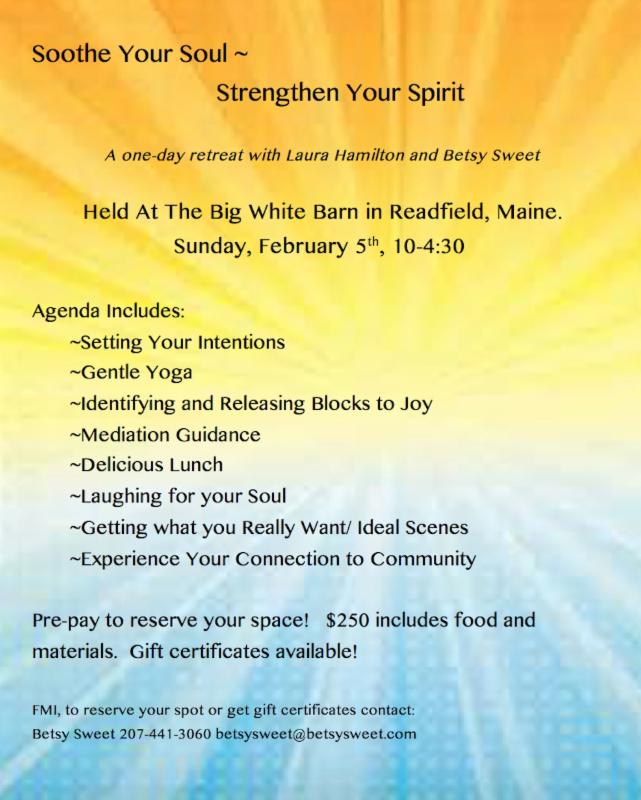 An All Day retreat, February 5th at the White Barn in Readfield, ME.