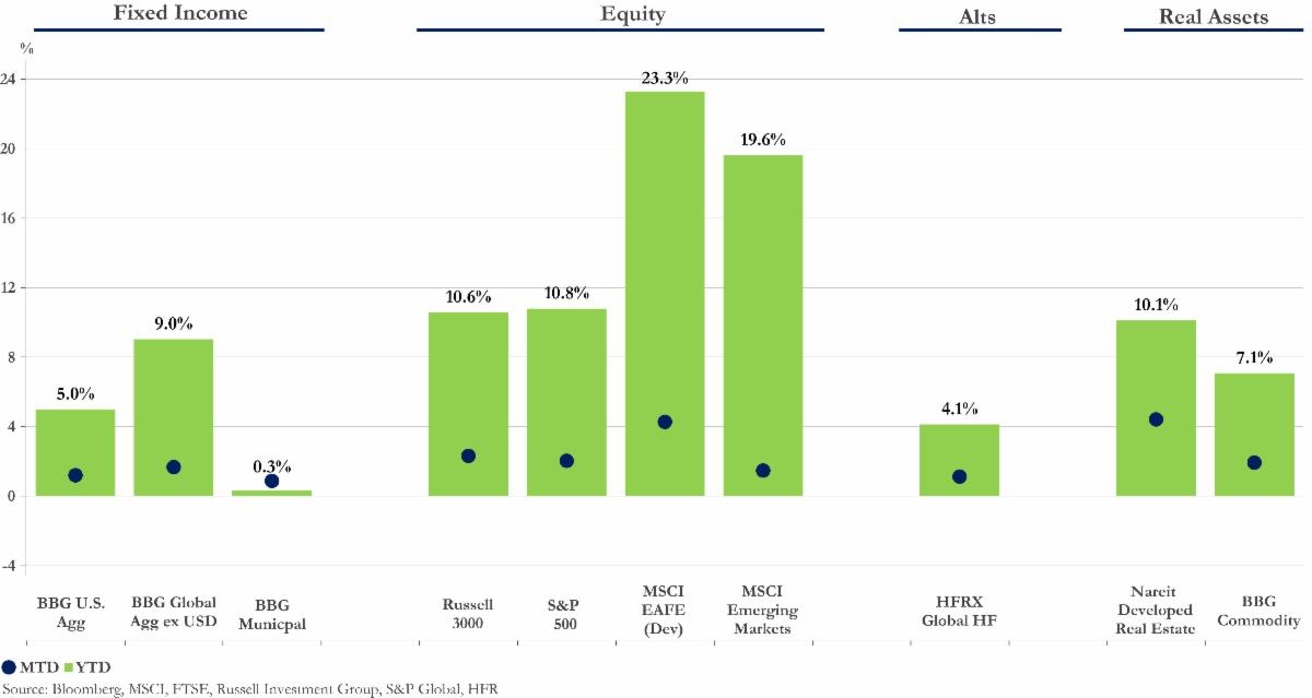 Data in this newsletter is obtained from sources which we, and our suppliers believe to be reliable, but we do not warrant or guarantee the timeliness or accuracy of this information. Consult your financial professional before making any investment decision. Past performance is no guarantee of future results. Diversification/asset allocation does not ensure a profit or guarantee against a loss. Economic and market forecasts presented herein reflect our judgment as of the date of this presentation and are subject to change without notice. Any forecasts are subject to high levels of uncertainty that may affect actual performance. Accordingly, forecasts should be viewed as merely representative of a broad range of possible outcomes. Forecasts are estimated, based on assumptions, and are subject to significant revision and may change materially as economic and market conditions change. Forecasts do not take into account the specific investment objectives, restrictions, tax and financial situation or other needs of any specific client.