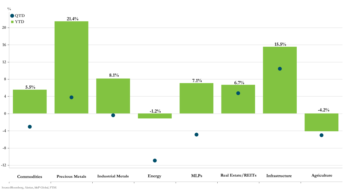 The NCREIF Property Index is a quarterly, unleveraged composite total return for private commercial real estate properties held for investment purposes only. Constituents include operating apartment, hotel, industrial, office, and retail properties.