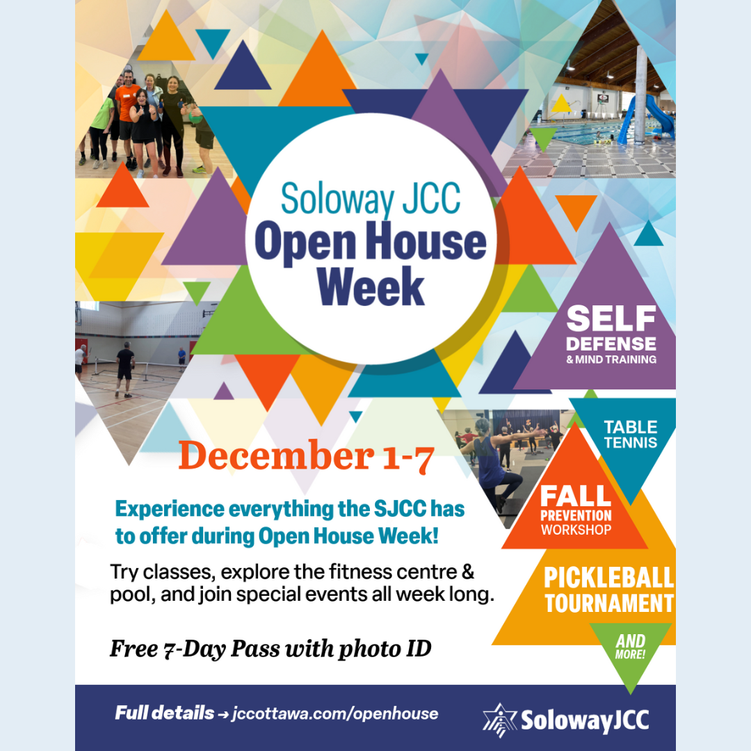 The Soloway JCC’s Open House Week returns this December, inviting the community to explore its wide range of programs, fitness facilities, and cultural offerings. Guests can enjoy free access, trial classes, and a warm, community-focused atmosphere that often inspires immediate membership. With activities for all ages, the SJCC continues to serve as a vibrant hub for Jewish life, wellness, and connection in Ottawa.