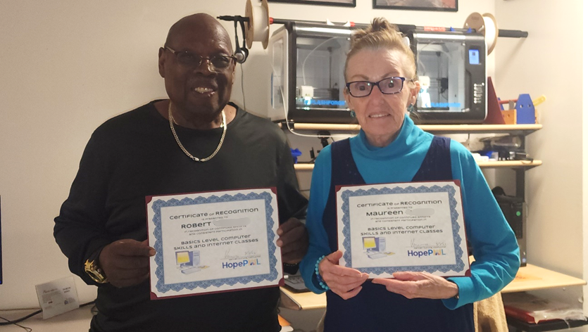 | | Building Confidence and Connection in the Digital Age | | Robert and Maureen, two students of our Adult Computing Classes at the Maynes Family Digital Learning Lab. | | |
