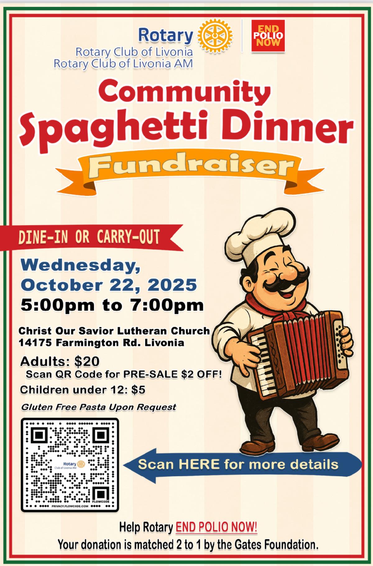 10/22/2025 - World Polio Day, Spaghetti Dinner Community Fundraiser, Christ Our Savior Lutheran Church, 5:00 - 7:00 PM, Details HERE.
