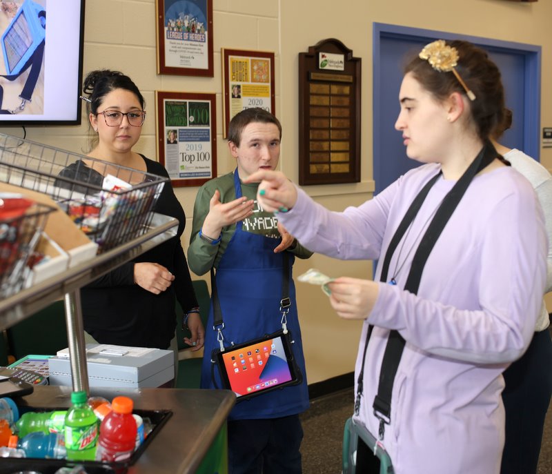 Aubrey and Declan are hard at work with the "Melmark on the Go" snack cart! | |