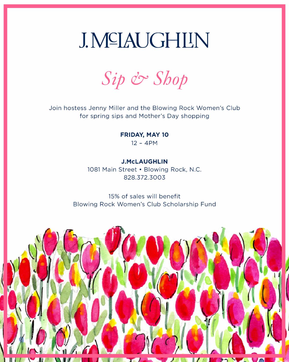 May 24 β 12:00 β 4:00 PM Sip & Shop Toast to Summer at J. McLaughlin to benefit the library. For more information please visit the library's website, www.blowingrocklibrary.com