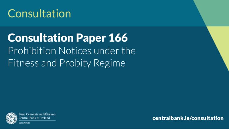 The Central Bank of Ireland has launched a consultation on the ‘Prohibition Notices under the Fitness and Probity Regime’, CP-166. The consultation will be open until Wednesday, 25th March 2026.