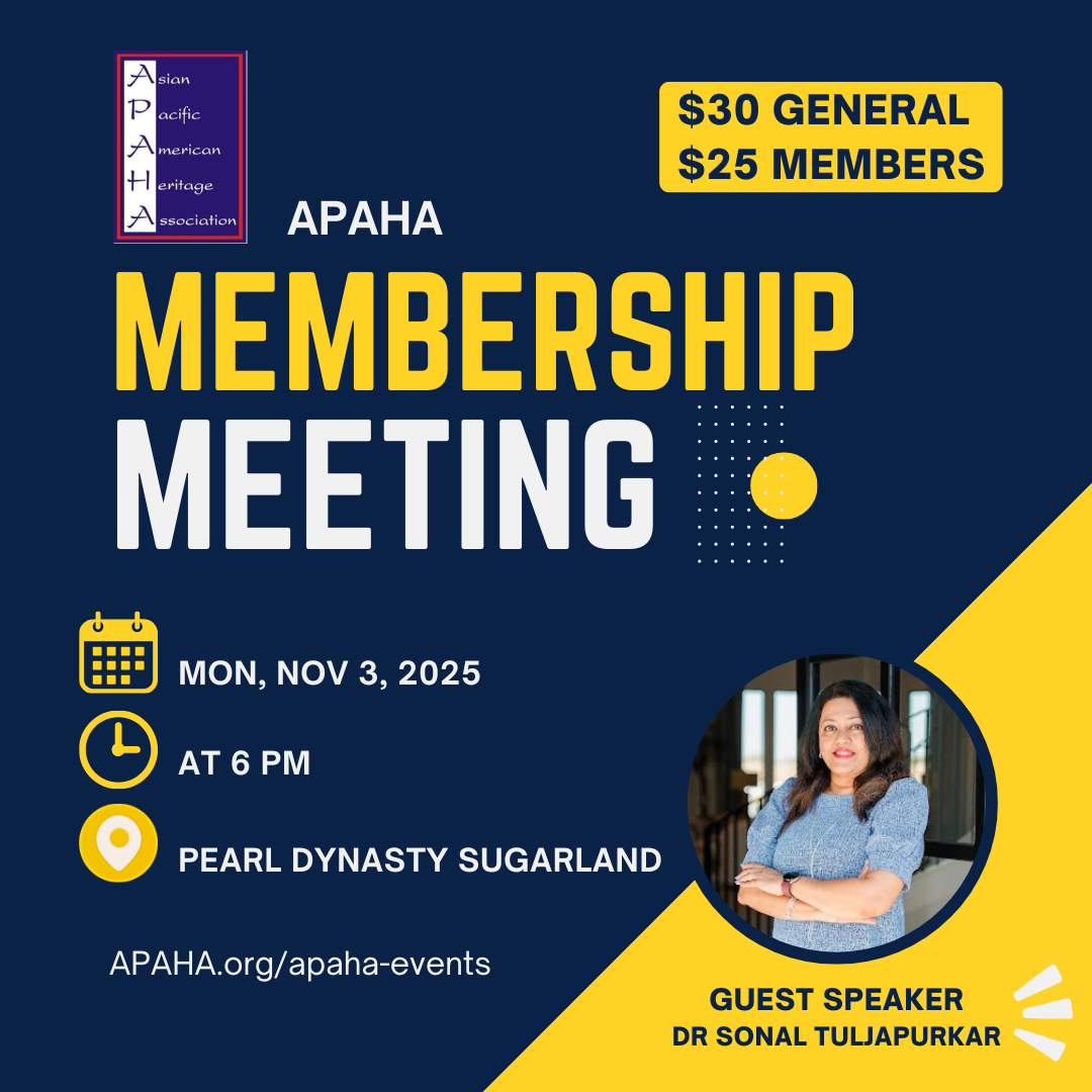 Join us for the APAHA Membership Meeting at Pearl Dynasty! This in-person event is a great opportunity to connect with fellow members, discuss upcoming events, and share ideas. Whether you're a long-time member or new to APAHA, we welcome you to join us for an evening of networking and collaboration.