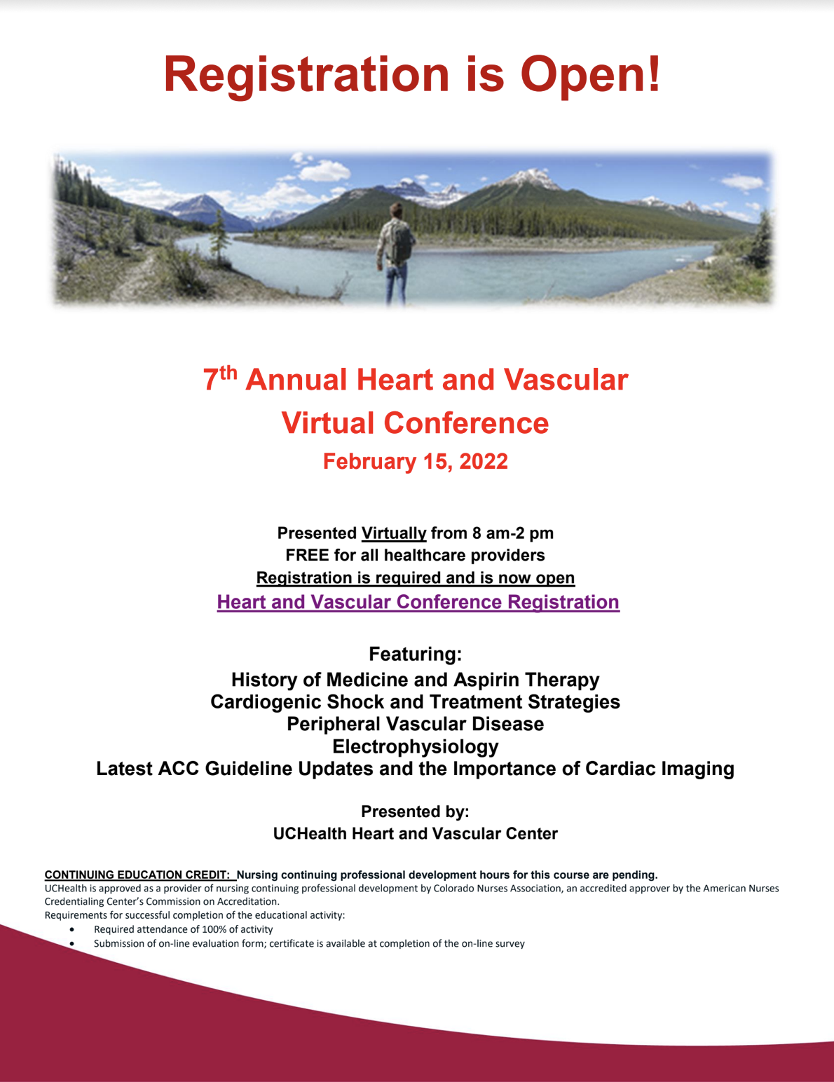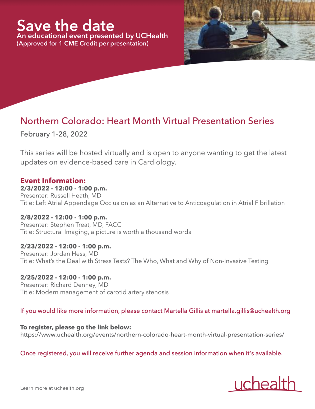 UCHealth would like to invite you to participate in Heart Month CME opportunities. Both a FREE and provide CME credits.