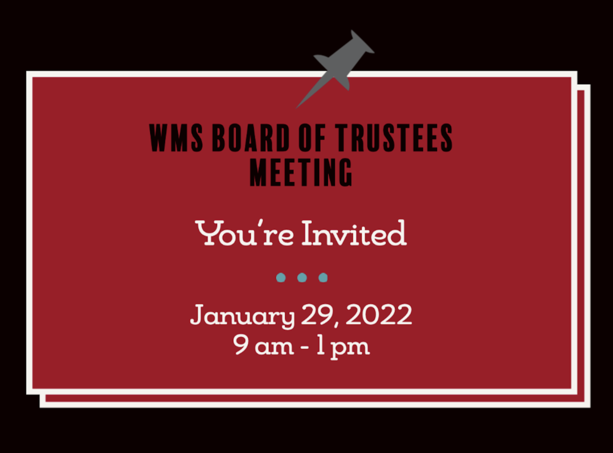 WMS Bylaws specify that all meetings of the WMS Board of Trustees (BoT) are open to active members. The WMS BoT will be at the end of the month to discuss legislative policy positions as well as conduct the other business of the Society.