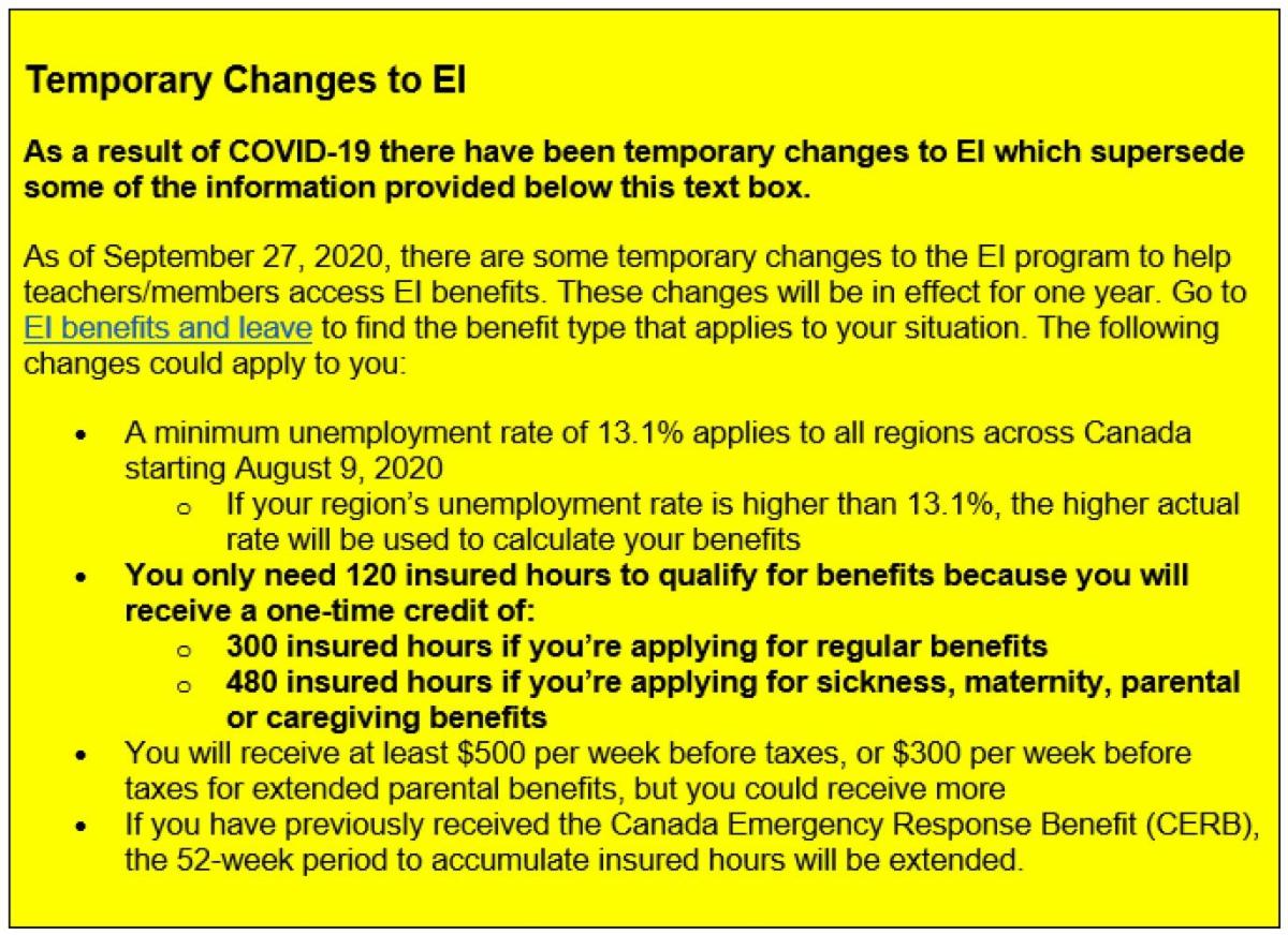 For those teachers who are not eligible for Employment Insurance benefits, the Government of Canada has introduced three benefits programs specifically related to providing financial support for loss of income as a result of COVID-19.