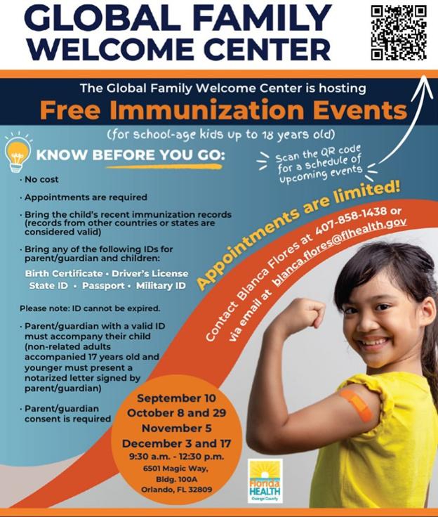 Free Immunizations at the OCPS Global Family Immunization Center: | | |