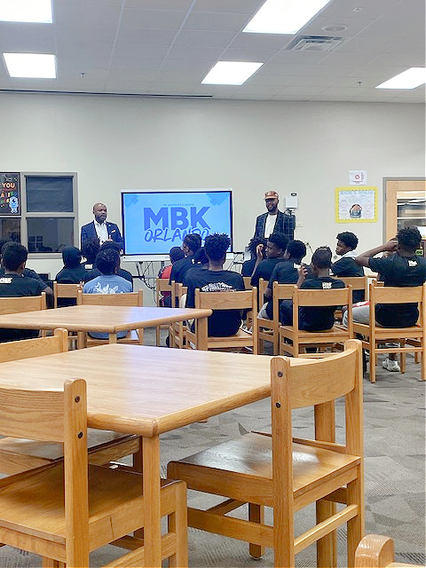 This week we had City of Orlando District 6 Commissioner Bakari Burns (above left) come and speak with our class of My Brother’s Keepersfor this school year. | | |
