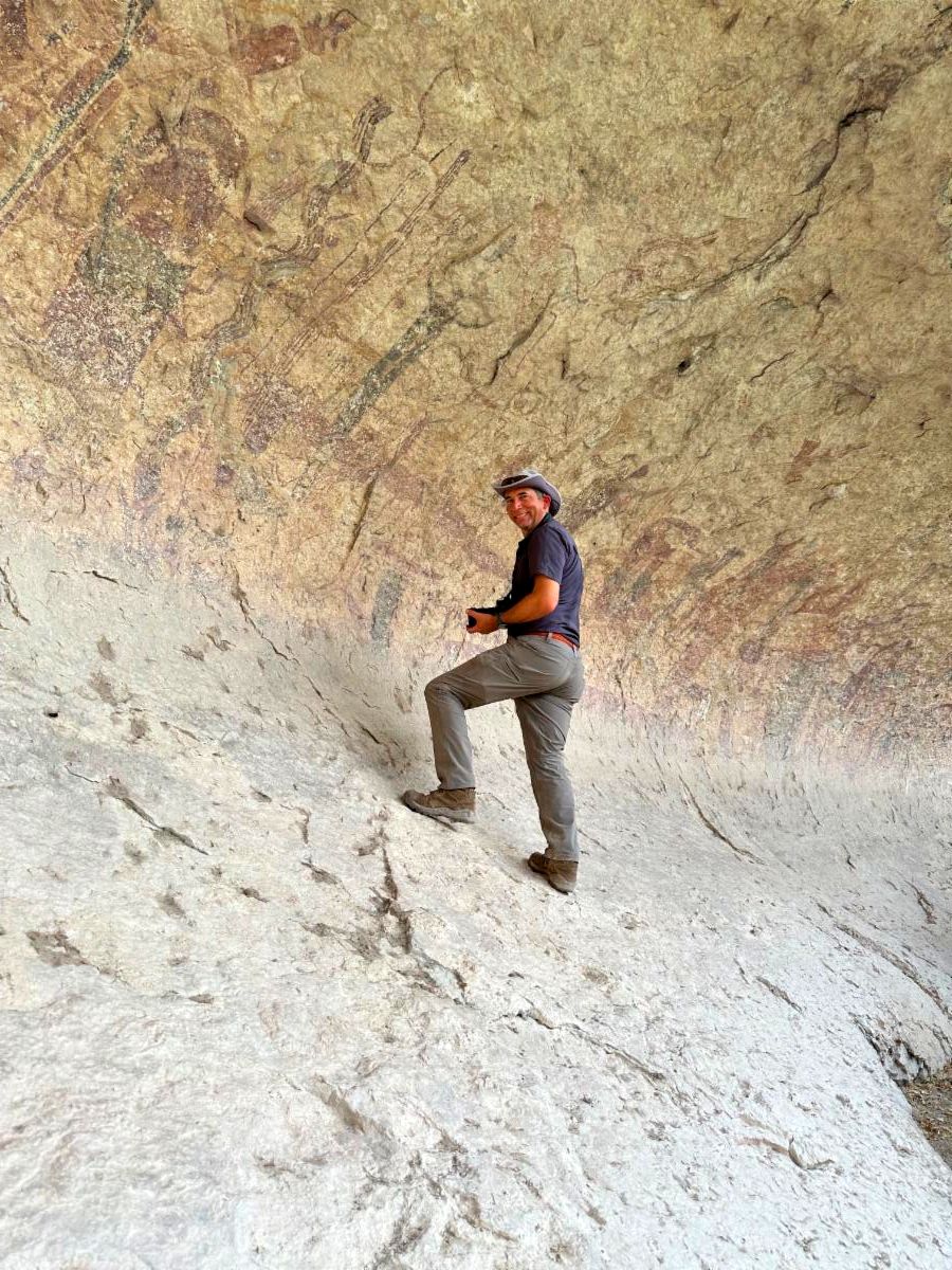 Image: Amistad National Recreation Area Archaeologist Jack Johnson is pictured above taking a close look at the art and checking the most recent waterline.