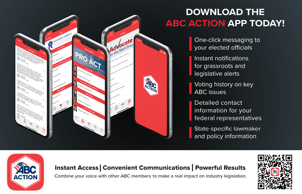Regulations, labor mandates, and tax policies can change overnight — often without input from the contractors they impact most. The ABC Action App ensures you’re never left in the dark and gives you a direct line to influence decisions that shape our industry.