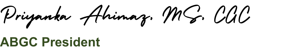 Strategic Plan: In collaboration with leadership of our sister GC organizations, the ABGC Board announced a new strategic plan and initiatives for 2025-2027. The initiatives are focused on innovation and equity in certification, including exploration of alternative and complementary exam formats, updates to the practice exam and a comprehensive practice analysis to ensure the exam remains aligned with current clinical realities and evolving roles in the field.